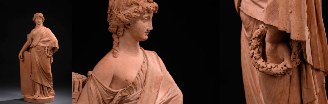 Par sa typologie et son symbolisme savant et raffiné, cette figure allégorique appartient au corpus de projets de monuments révolutionnaires de Joseph Chinard, inauguré en 1790 par son groupe en terre cuite L’Amour de la Patrie (Lyon, musée des Beaux-Arts, n°inv. 1962-3) et son impressionnante Allégorie de la Famille Risamburgh en marbre conservée au J. Paul Getty Museum à Los Angeles (n° 94.SA.2) . Notre œuvre témoigne de la production patriotique de l’artiste pendant les terribles années de la Terreur dont la ville de Lyon a été lourdement victime. Exposée au Salon de la rétrospective sur l’artiste au pavillon de Marsan en 1909/1910, la terre cuite était non localisée depuis son passage en vente à Lyon en 1913. Sa réapparition sur le marché de l’art est un véritable évènement qui enrichit la connaissance de l’Œuvre de l’artiste.