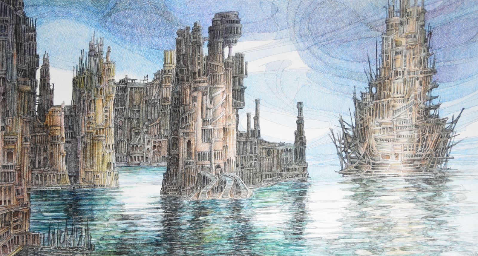 Toutefois le mystère de Bernard Jan reste entier, cette fascinante écriture de lui-même, errance cosmique, patiente, délicate, hallucinante, nous bouleverse par son mystère empreint de solitude. Ses univers babéliens, gothiques, labyrinthiques et minéraux foisonnant de détails, où s’imbriquent, passages, arcades, tunnels, tours, ruines de civilisations oubliés ou cités du futur gardent jalousement leurs secrets, que chacun aura à cœur de percer.